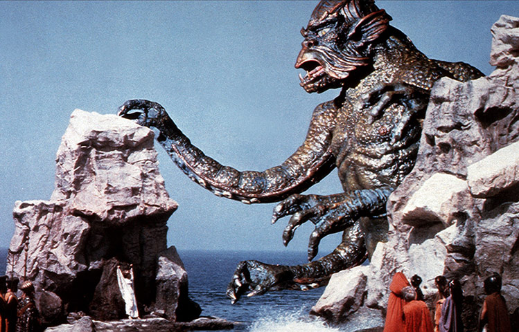 It was clear to Hamlin anyway that Harryhausen was really running the show, along with longtime producing partner Schneer, from behind the director’s chair. “Whenever we were doing any of the stuff with the stop-motion, Ray was doing the directing. … I remember him being there all the time. I have lots of pictures from the set and he’s in all of the pictures. He was right there whenever we were doing any of the sequences that involved me fighting the air. And we had some fights over that, too.” For the scene in which Perseus battles giant, stop-motion scorpions, Harryhausen had the melee mapped out quite meticulously in his head, with no room for improvisation. On the day of the shoot, Hamlin suggested adding an action moment in which he catches the arachnid’s moving tail and slices off its stinger. “[Harryhausen] goes, ‘Oh, I don’t want you to do that. That’s not going to work. You can’t touch the thing. It’s not going to happen.’ Well, of course, since the camera’s rolling and I’m there, all these wind machine are going, I can do whatever I want because I’m out there, so I put my hand up as though I was catching the tail, and I sliced it off, and they yelled, ‘Cut! Cut! Cut! You’re not supposed to do that! I told you that’s not part of the deal. You’re just supposed to stab the thing and swipe at it.’ And I said, ‘Ray, I’m so sorry, but I just couldn’t help myself. I just imagined that this thing was coming down.’ And we kind of fought about that for a while. But if you see the movie, it’s in there.”