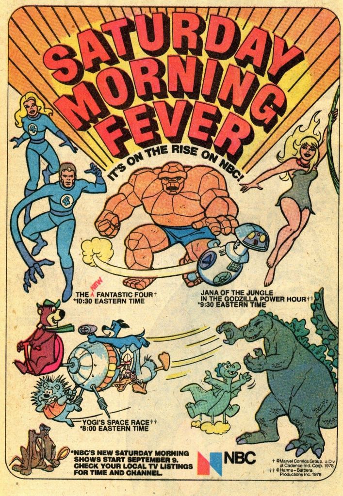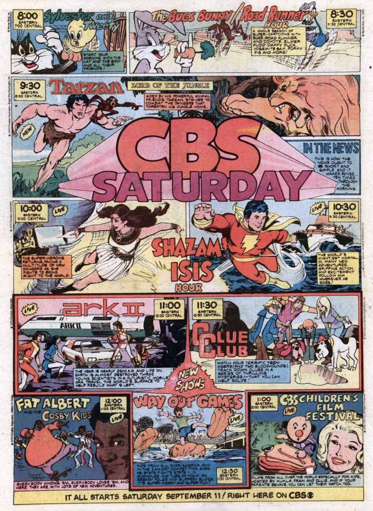 My golden era was during the ’70s, as I was born in 1968, and was the prime target audience for anything and everything the networks would throw at me. Standout shows for me include (in no special order) a mixture of live-action and animated programs (not to mention reruns from previous decades that made their way back into Saturdays/syndication): LAND OF THE LOST, THE KROFFT SUPERSHOW, STAR TREK THE ANIMATED SERIES, THUNDARR THE BARBARIAN, GODZILLA, RETURN TO THE PLANET OF THE APES, SHAZAM!/ISIS, FLASH GORDON, SUPERFRIENDS, PINK PANTHER, JABBERJAW, VALLEY OF THE DINOSAURS, MONSTER SQUAD, FANTASTIC FOUR, SPACE GHOST, HONG KONG PHOOEY, CAPTAIN CAVEMAN AND THE TEEN ANGELS, JONNY QUEST, HERCULOIDS, JOSIE AND THE PUSSYCATS IN OUTER SPACE, SECRET LIVES OF WALDO KITTY, PLASTIC MAN, JASON OF STAR COMMAND and ARK II.