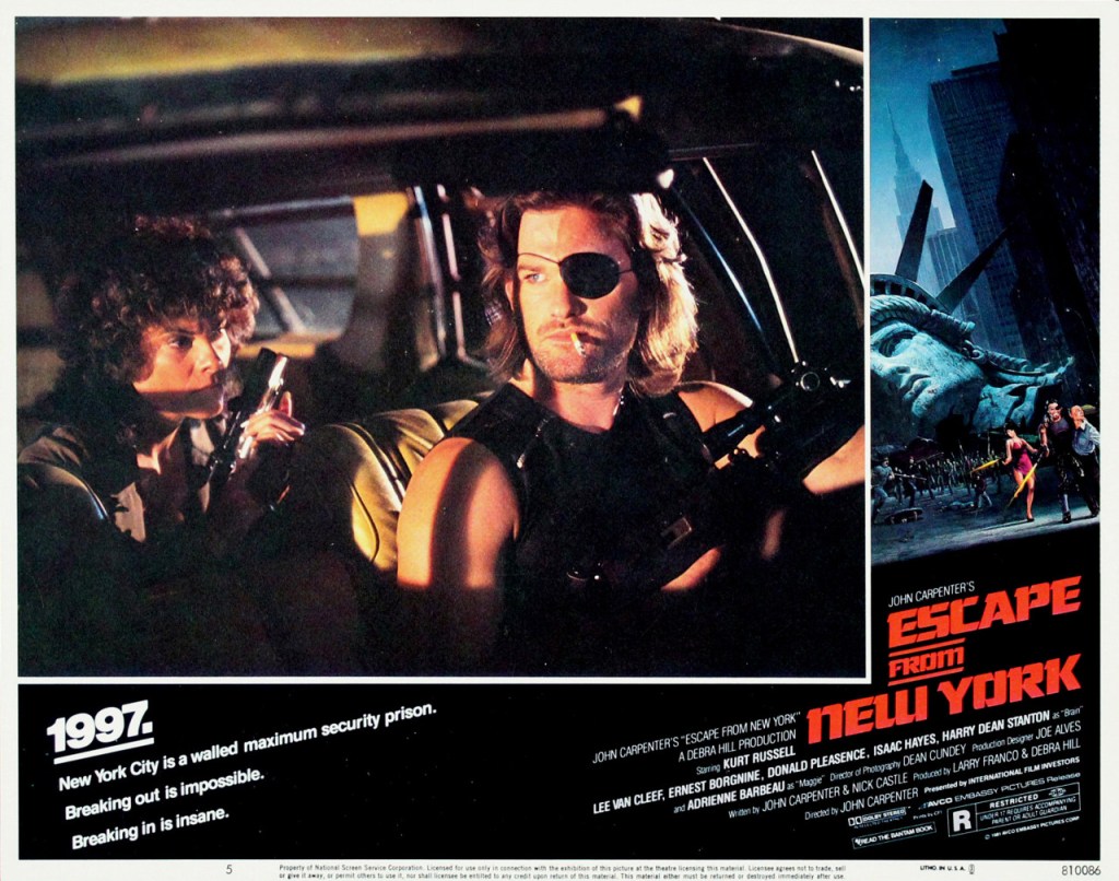 That’s the hook that made all of us want to go for a thrill ride with Kurt in John Carpenter’s newest adventure in 1981, ESCAPE FROM NEW YORK, a radically different film from his previous big-screen entries, 1978’s game-changing indie film HALLOWEEN and his 1980 horror follow-up, THE FOG.