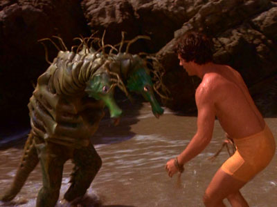 In the mid-1970s, it seemed that prime-time television had very little interest in earthbound Sci-Fi other than the exploits of THE SIX MILLION DOLLAR MAN and THE BIONIC WOMAN. With the energy crisis, pollution, and the single tear of Iron Eyes Cody permeating the airwaves alongside coverage of Jacques Cousteau’s aquatic exploits, the Bermuda Triangle, and JAWS, public fascination fixated on our increasing destruction of natural resources and the mysteries of the ocean blue.