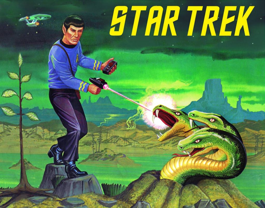 Although I coveted them, I never bought the cool Mr. Spock model (“Star Trek’s Most Popular Character”!) in which he’s firing his phaser at a three-headed snake-creature on an alien planet, or the Enterprise “Command Bridge.”