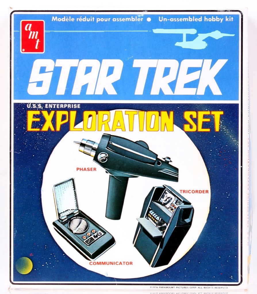 I did, however, buy the U.S.S. Enterprise Exploration Set. You could build a phaser, communicator and a tricorder, scaled down for kiddie-sized hands, and run around your own back yard as if you were a member of the Enterprise landing party. Problem was, these things were kind of brittle, and it was extremely hard to wait for the glue to dry when you wanted to race outside and play with them — resulting in smudgy seams and sticky fingers.
