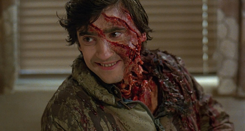 Of that especially memorable bit o’ dangling flesh on Jack during his first hospital visit with David in the movie, Baker explains, “That was just one of those kind of happy accident things. … To keep the blood looking fresh, what I would do is spritz it with a water sprayer before the takes, and the water would get on that little wiggly bit of flesh and give it a little more weight, and that’s what caused it to wiggle like that. And it just was one of those things that was unplanned, and happened because it happened. A cool thing. I’m glad it worked out that way.”