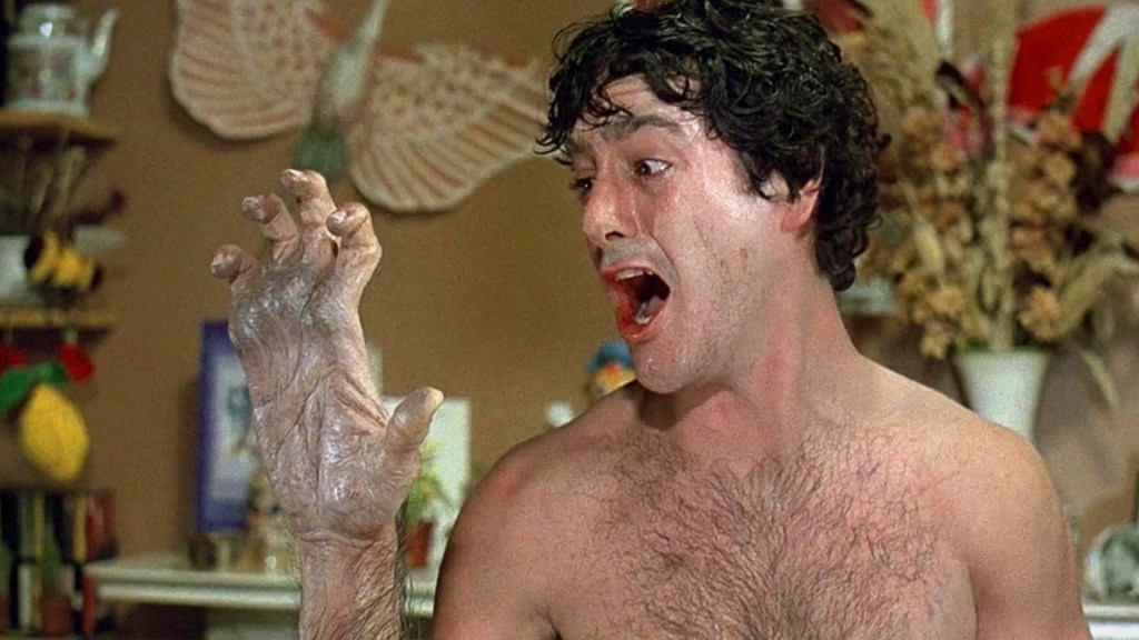 Naughton jokes, “I think he was a Pepper. That was the key. I had the inside track.” He then explains, “[Landis] went about casting the two lead parts primarily because Rick Baker needed those guys to get their dimensions and get the makeup going. So he started doing the casting before he really had the financing in place. But nevertheless, we had just a meeting at his office at Universal and it went very well. … He gave me his phone number of his office on the script, and I took it home and read it and called him the next day, and he goes, ‘Well, do you want to be a werewolf?’ … And he sent me right over to Rick Baker’s shop, which was just basically like a rented garage in the San Fernando Valley with all these young kids that were apprenticing with him, and away we went. Little did I know what I was in for.”