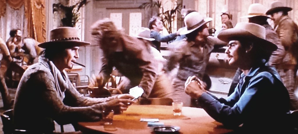Benjamin said he had no hesitation about taking on the horseback riding and stunt work required of his role, offering, “I looked forward to all of that. It was the 12-year-old in me that took over, so the idea I could ride and all that kind of stuff — it was pretty much a dream come true.” Of course, that meant Benjamin and co-stars James Brolin and Dick van Patten could engage in the ultimate clichéd Western saloon brawl and love every minute of it.