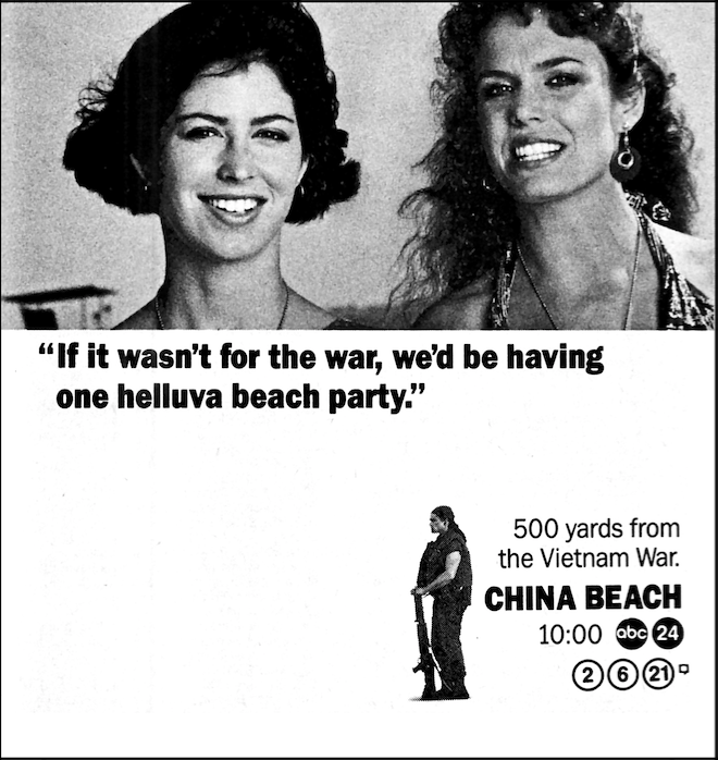 Despite initial comparisons to M*A*S*H – minus the laugh track – when China Beach debuted in April of 1988, the drama quickly came into its own with its smart writing, cinematic sensibilities and honest portrayal of the horrors of war and the resulting psychological scars.