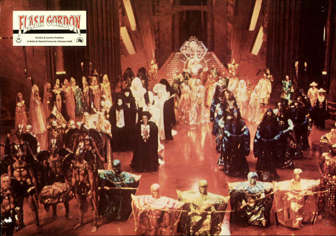 I have very fond memories of looking at Lobby Cards before any movie experience back when I was a kid. They really made an impact on my impressionable mind. These FLASH GORDON ones didn’t disappoint; they captured the vibrant and otherworldly nature of the story, the elaborate costumes, the massive sets, and the larger-than-life characters that would populate the film. They were snapshots that provided a colorful glimpse into the grandeur and imaginative filmmaking that would soon unfold before my eyes.