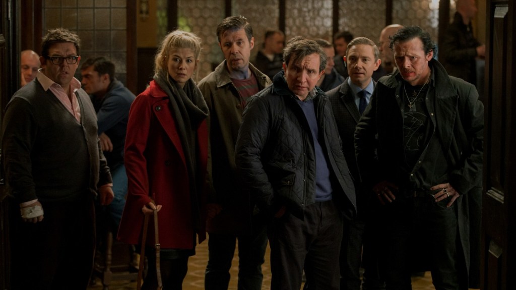 THE WORLD’S END follows a reunited group of high-school friends (Pegg, Nick Frost, Martin Freeman, Rosamund Pike, Paddy Considine and Eddie Marsan), who embark on an epic 12-pub crawl in their hometown in an effort to complete “The Golden Mile,” having fallen short two decades earlier when they were teens in their prime. Back to finish what they started, the reunited pals find out the hard way that an alien robo-invasion is taking place.