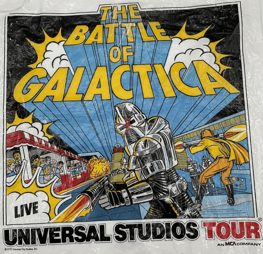 Still, I was missing some of the fun… As a kid raised in suburban Westchester, New York, I didn’t have the luxury of being a stone’s throw from Universal Studios Hollywood like I do now as a Los Angeles resident. But one day in 1980, my parents announced that we’d be flying to California for a family trip to San Francisco and Los Angeles. Yes!!!! I begged my folks to take me to Universal Studios in Hollywood. Perhaps my psychological campaign of constant suggestion/pestering had paid off? You see, I knew all about “The Battle of Galactica” ride that had just opened at Universal from Starlog magazine, and I was desperate to experience it in person.